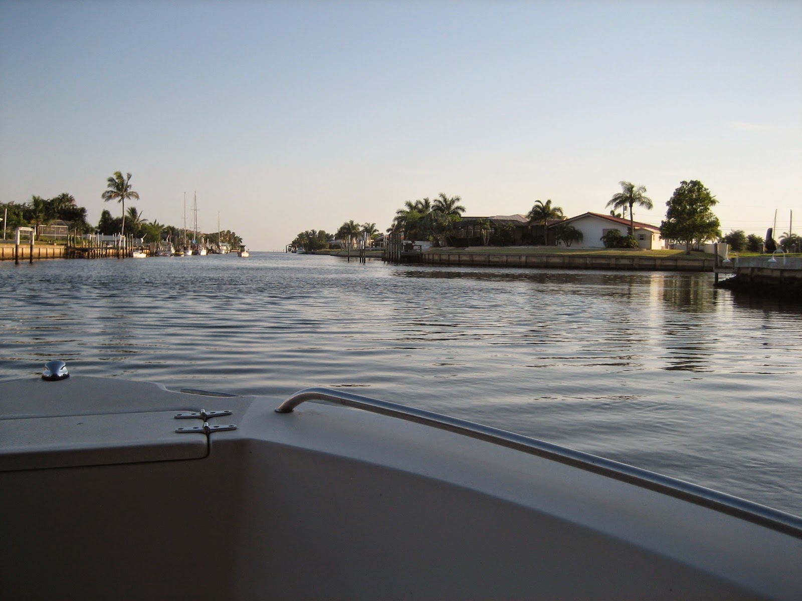 Leaving via our boat, Seas the Day, she is a Sea Hunt, bought new in 2003 and is a center console that has a small head/porta pot facility below, her length is just twenty feet long going peacefully down our canal on the Elkam waterway for a sunset cruise, going towards our harbor, Charlotte, time elapse approximately five minutes! Pretty nice here too, I'm just saying. We are nearly eighty-five miles south of our son's new home in Apollo Beach and one hundred miles from Tampa.